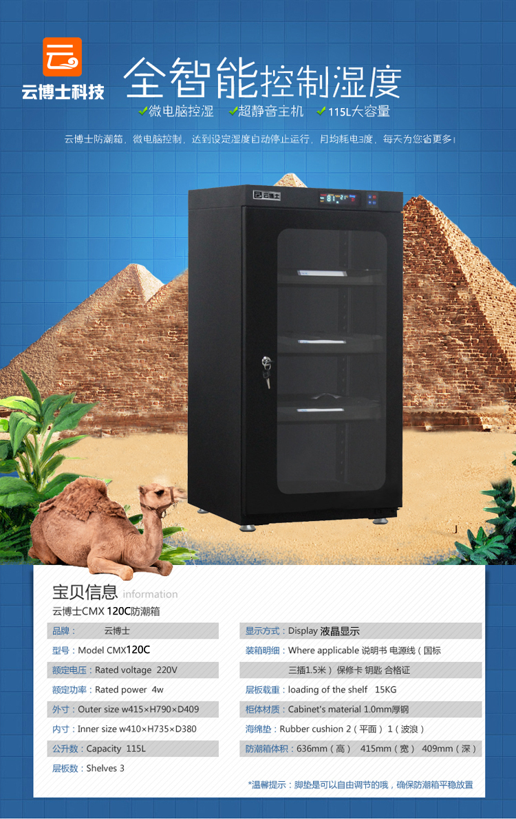 云博士CMX120C郵票防潮箱采用最新鈑金鐳射切割技術(shù),密封性能好,雙傳感器主機(jī)除濕更快,防潮效果佳,溫濕度顯示由原裝進(jìn)口液晶顯示,梅雨季節(jié)防潮必備,此款為115L,大容量,3塊層板,3塊海綿墊,平面2塊,波浪1塊,郵票存放更安全,我們專注郵票防潮,訂購電話:400-066-2279(免長(zhǎng)途費(fèi))