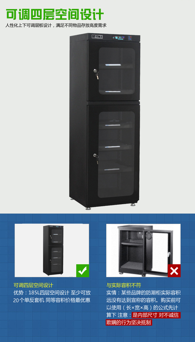 云博士CMX220C單反干燥柜采用最新鈑金鐳射切割技術(shù),密封性能好,雙傳感器主機(jī)除濕更快,防潮效果佳,溫濕度顯示由原裝進(jìn)口液晶顯示,梅雨季節(jié)防潮必備,此款為185L,大容量,專業(yè)攝影器材控,5塊層板,5塊海綿墊,平面4塊,波浪1塊,鏡頭存放更安全,我們專注鏡頭防潮,訂購電話:400-066-2279(免長途費)